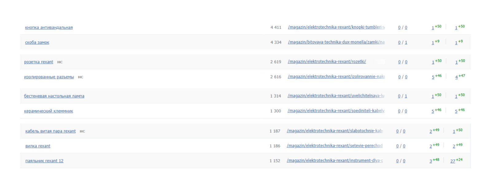 Также в топ Яндекса вышли и существенно поднялись в Google карточки товаров по низкочастотным, но целевым для бизнеса запросам, что привело к росту заявок на определенные товарные позиции: