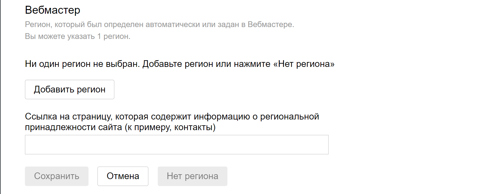 В открывшемся окне нужно выбрать регион и добавить ссылку на страницу сайта, где указан тот же регион.