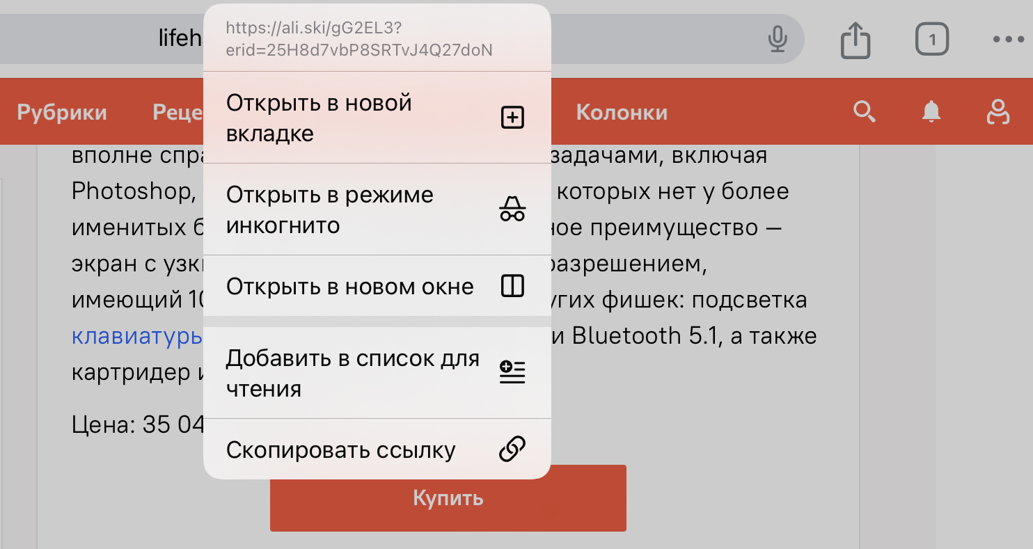 Пример из России – подборки «Лайфхакера». Они размещают ссылки внутри кнопок «Купить» в своих подборках:
